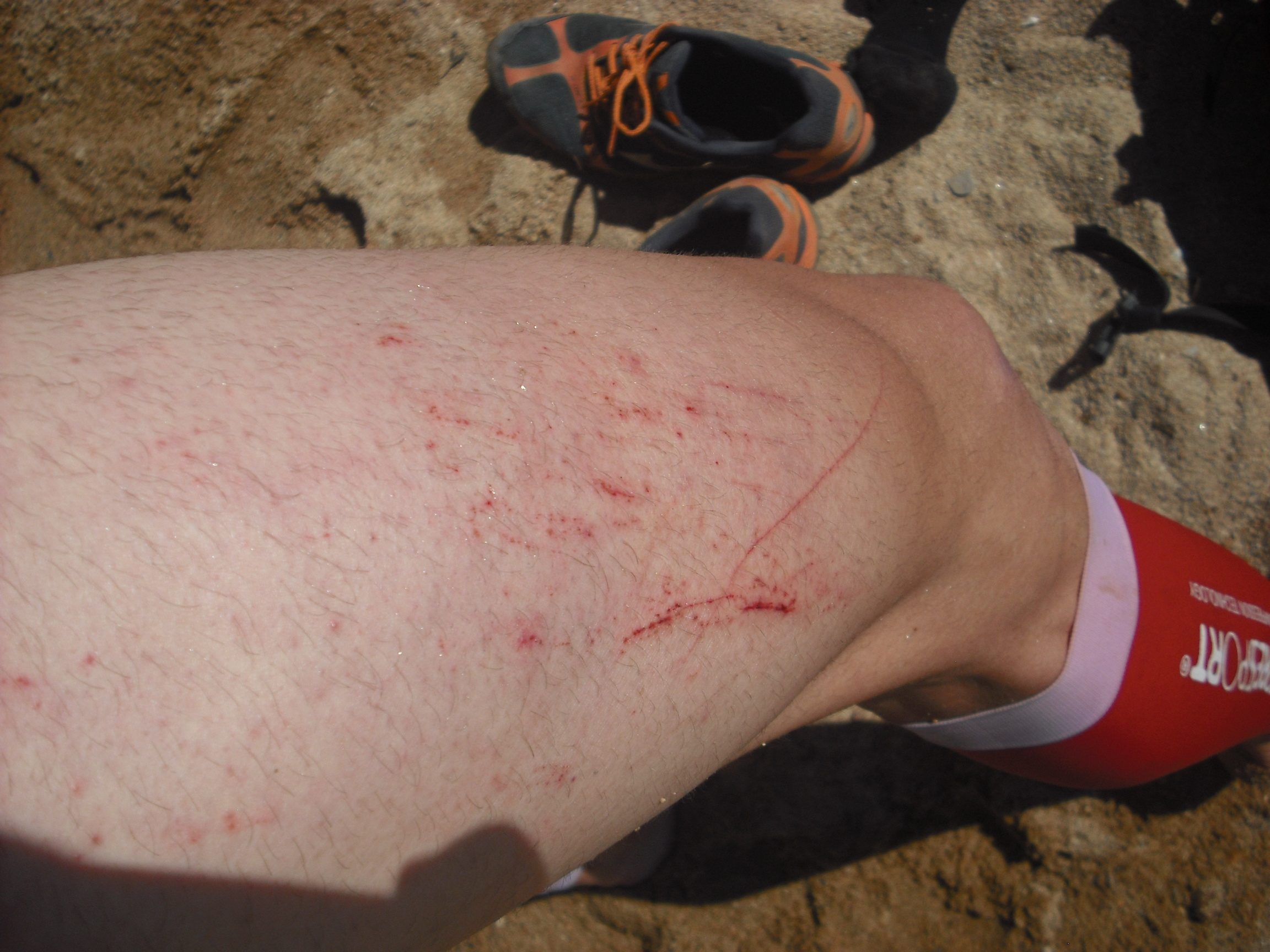 I descended as fast as I could go over the very technical trail. One that Shona who has run all over the world would say is a 10 of 10 in terms of technicality. Half way down at the 1hr30 mark I found myself doing a super man down to the ground. But my right arm, hand, and right thigh are not made of steel and has left a bloody mark.