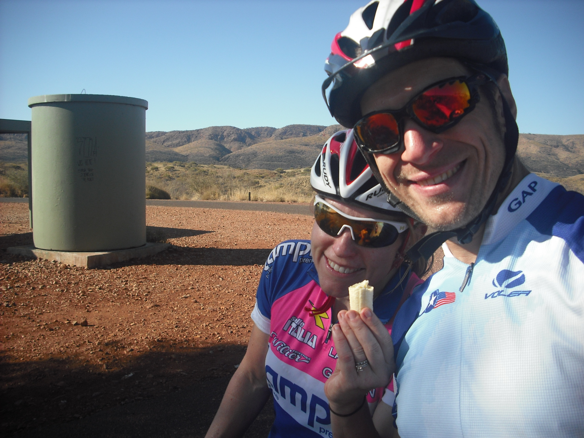 It was March 2013. Fiona and I were dating for a week and we headed to Mt Sonder; the 4th tallest Mountain in the Northern Territory. We camped out at the base, hiked the mountain and then had an amazing ride in a rarity in the NT; rain. According to Fiona, it was here that she fell in love with me (because I can’t just make that claim). Later that year on August 31st, we would once again be at the top of Mt Sonder, at sunrise, on my knee proposing to Fiona with a 1.45 carat diamond in a box of M&M’s with the words inscribed Will You Marry Me? We’ve also had several other training weekends and epic adventures like our Glen Helen to Alice Springs to Glen Helen 7hr45minute, 270KM bike ride. And then on our first anniversary, June 21st, 2015 Fiona surprised me with a non-training weekend at Glen Helen that included dinner at their restaurant, a “hotel” room, Moet Champagne, and the next morning, a 30minute helicopter ride over a large area, including Mt Sonder’s Summit. So this area, is special to us.