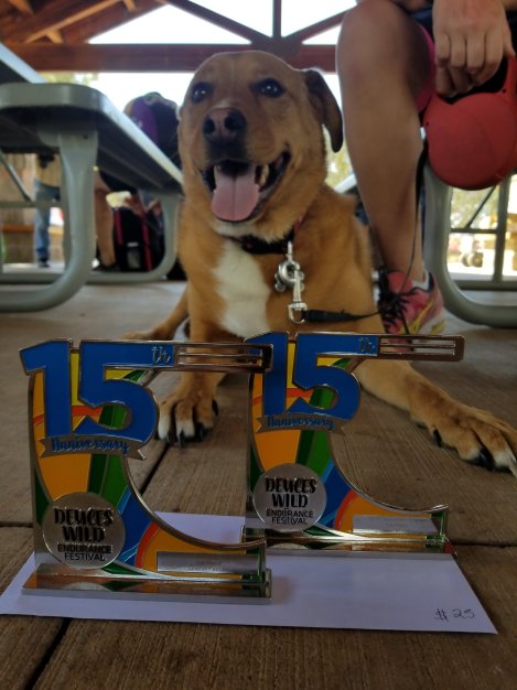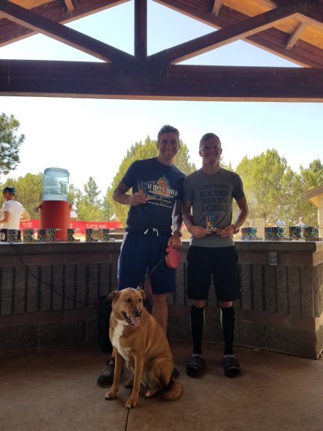I had seen one bike in T1 and never saw the 1st place Pro the entire time. I thought I could be in 1st or 2nd but it was 2nd. I always go as hard as I can and what my legs tell me I can do. SO first mile of 7:48, then 8:08 as I hit the dirt trails, 8:11 getting water and then into headwind for an 8:38, back the other way down hill with an 8:07 where I saw Elliott pass me as 2nd place had already done at mile 1. Now Elliott made up 2:40 on me in 2miles. WTF. It started to go to shit and I could feel cramps coming on because I hadn’t drank enough and was dehydrated. Thankfully I did have an M&M container with lots of salt. I had 6 during the next hour. I couldn’t see anyone behind me, I had no idea where Sean was and just wanted to keep running. I did stop/walk quickly at several aid stations just to savor the Water and Gatorade 8:39, 8:37, 8:35, 8:48 back into the head wind at which point I saw FiFi and got some High 5 action. She was struggling and couldn’t breath but ended up 3rd female Overall. Then, 8:48, 8:56, 8:02, 8:20 and a whopping 6:34/mile for the last 20 seconds lol.
