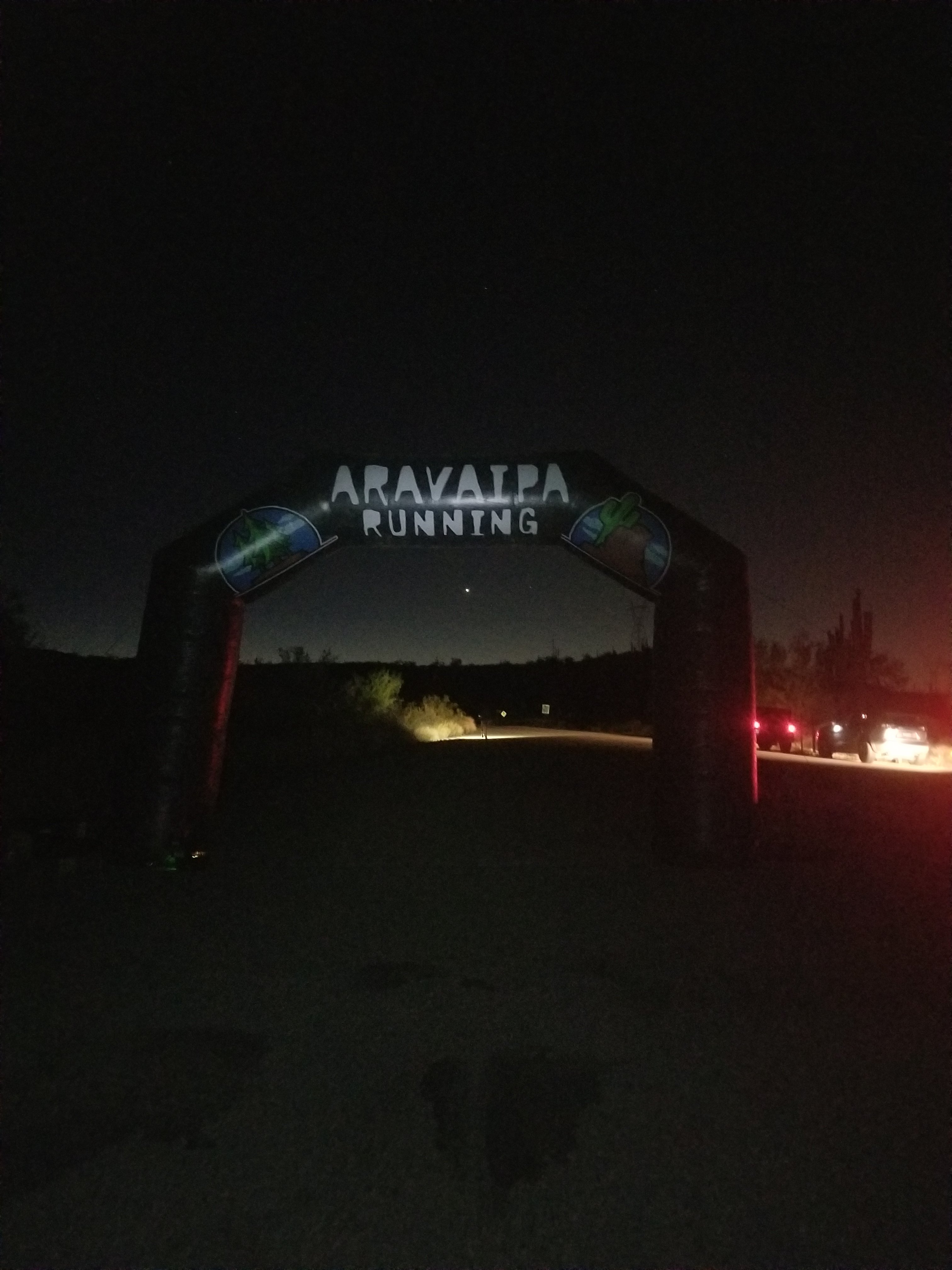 We woke up at 4:15am. I ate 2 pieces of toast with Jam and vegan butter, a banana, and medium redbull. I layered up with my WattieInk Kona kit and we drove the 5min to the race start. I checked in, sat in the car for 20min, and hit the loo. I boarded the bus heading 30miles West towards Lake Pleasant where the race began. It was at this time I thought back to epic bus rides: 24hours from Santiago, Chile to Buenos Aires, Argentima across the Andes Mountains; Lake Nicaragua from San Calos to Managua where people had to get out to push the bus through the muddy dirt, and the Oracle 50km. Honestly, there is nothing like driving in the dark, at 5:30AM, 30 miles away, and thinking, “I gotta run this???”. It was 40F, black with stars above, and I hit the loo again. I ate 100calories of Clif Shot Blocks 30min before and again 15min before. I was seeded 4th based off of past performances and started in the first wave at 6:30AM. It was still totally dark and hard for me to see since my eyes were watering from the cold and since I usually where glasses. I started in 3rd place behind the eventual winner in 3:59 and fellow Tucson based Professional Triathlete Lisa Roberts carring a baby Yoda in tow.