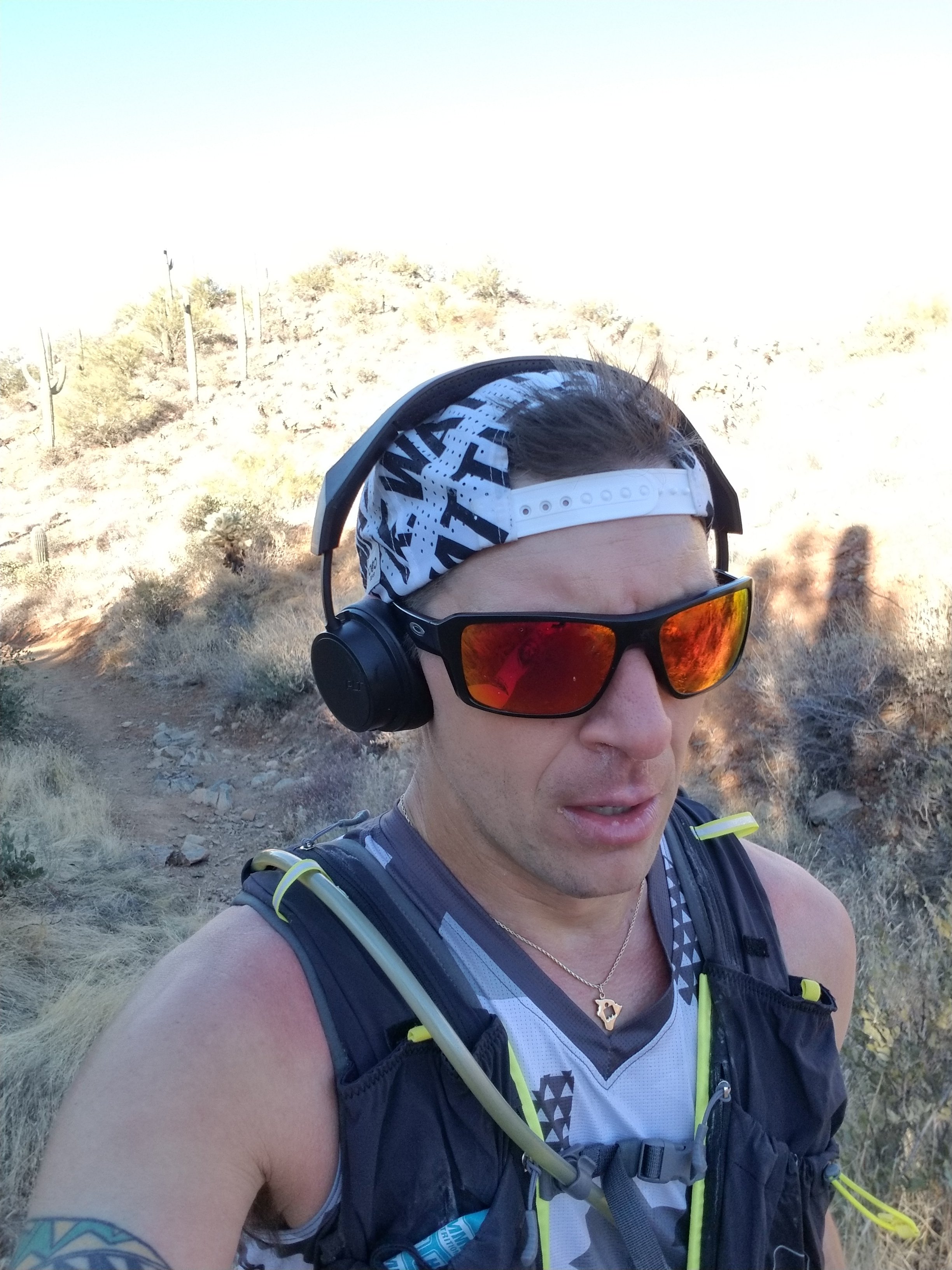 At 6 miles I was passed by a bloke. I paced with him for the next 3 miles coming within 10 meters of baby yoda. We were running on the dirt road right next to the trail which I sort of felt was cheating since Lisa was on the path, and while the path was a bit more ankle rolling, I figured it was all the same ground so I went with him for a bit. We passed by some hunters with shotguns and we both looked over with EDM playing through my headphones; Arizona.