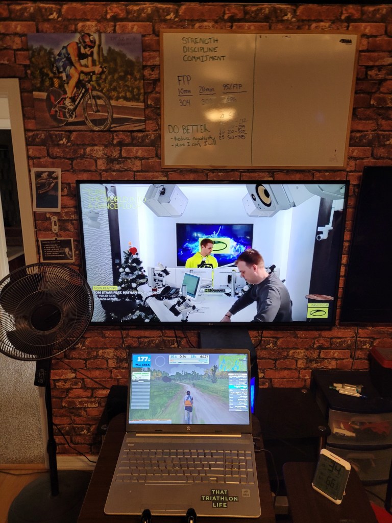 It’s Saturday January 8th. I am on zwift doing a 1 hour recovery ride at <150 watts and watching Armin Van Buren on YouTube. The day started off with moving some soil for a big project over Christmas break that I did, a 3KM swim with 5x200m at 1:39pace, a trip to the dog Park with Roxy, Sydney, and Fiona, take down some decorations, an easy 8mile run at 8:55/mile avg, now the bike followed by Epson Salt Bath, then to the Oro Valley for Mr Ans hibachi with my boss and Fiona. It’s how i roll.