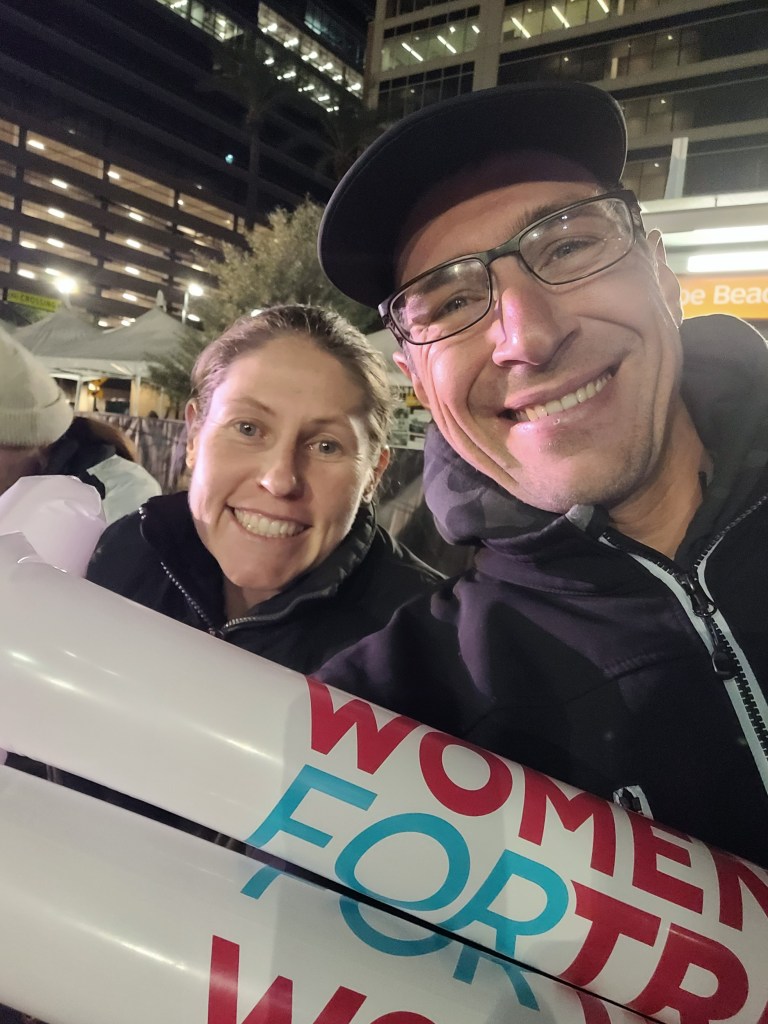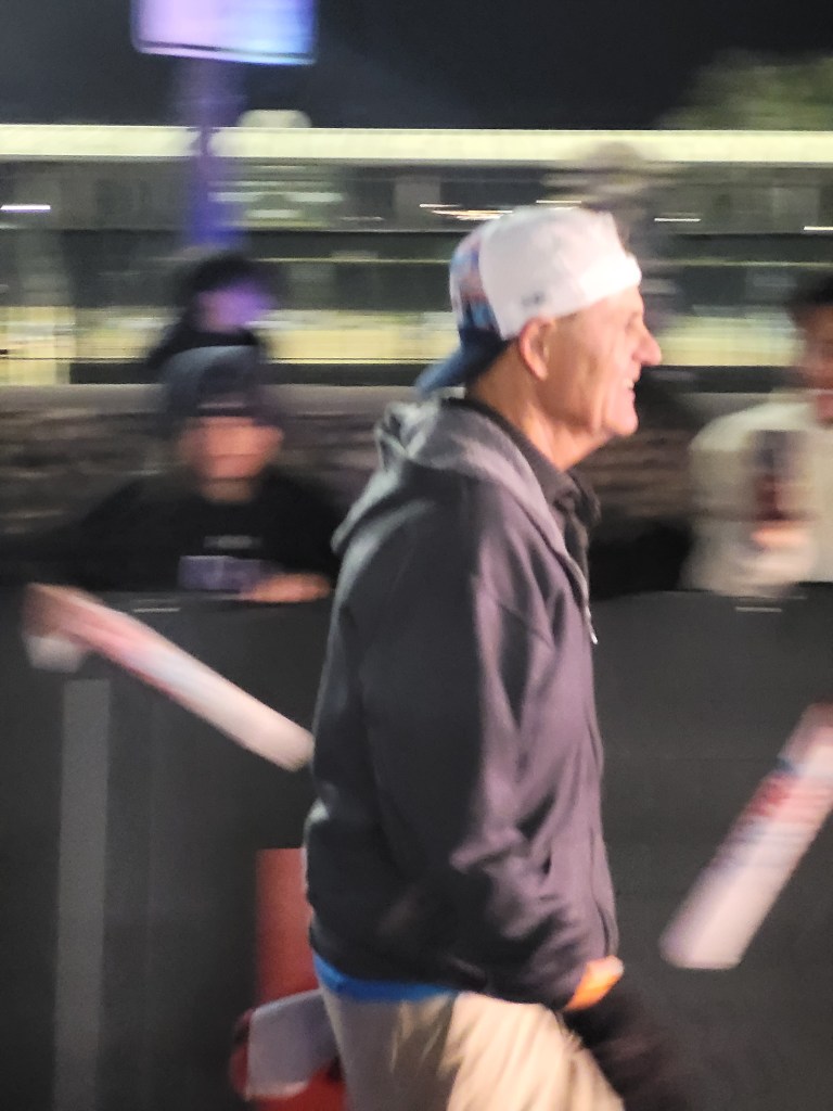 When someone would start cheering me on when I was walking, I would then use them to start running and they loved it. I knew my day was going to shit, I had no idea where this pain was coming from. I have felt this stress in the chest before, usually it is the night of the IM but never has it brought me to a walk in a race before. I was peeing while walking/running so I didn’t believe I was dehydrated; I also don’t believe I had too much salt but will be working more salt testing next season via Precision Hydration. On my second loop around mile 15, Jo came up on me and was like “Whoa, you ok?” We chatted quickly but I said, keep going! She told me about her tendons that flared up big time in which she was unable to put out any power on the bike. Near the IM Village I saw an old friend I had found searching blogs like 10 years ago, Jason McFaul. I saw him multiple times on the day which was always a treat. Thanks for the support Jason! I kept to Gatorade for the first half marathon, RedBull for the 3rd quarter, and the final quarter was on Coke. I also decided that I was going to have some additional fun. Remember Paula Findlay of That Triathlon Life Podcast, she said something like “Well those Maurtens are expensive, I’d be stocking up on them if I could.” Well I took it to heart and start grabbing 2 per aid station. I filled my pockets and then when I finished my bottle, started putting them in there. I finished the race with 25 Maurten Gels worth $100 hahaha. At the opposite end of the course and 18miles in I saw Jo chatting with Pete, I gave them both a big hug and we had a triple hug dance party, now that was also quite hilarious.