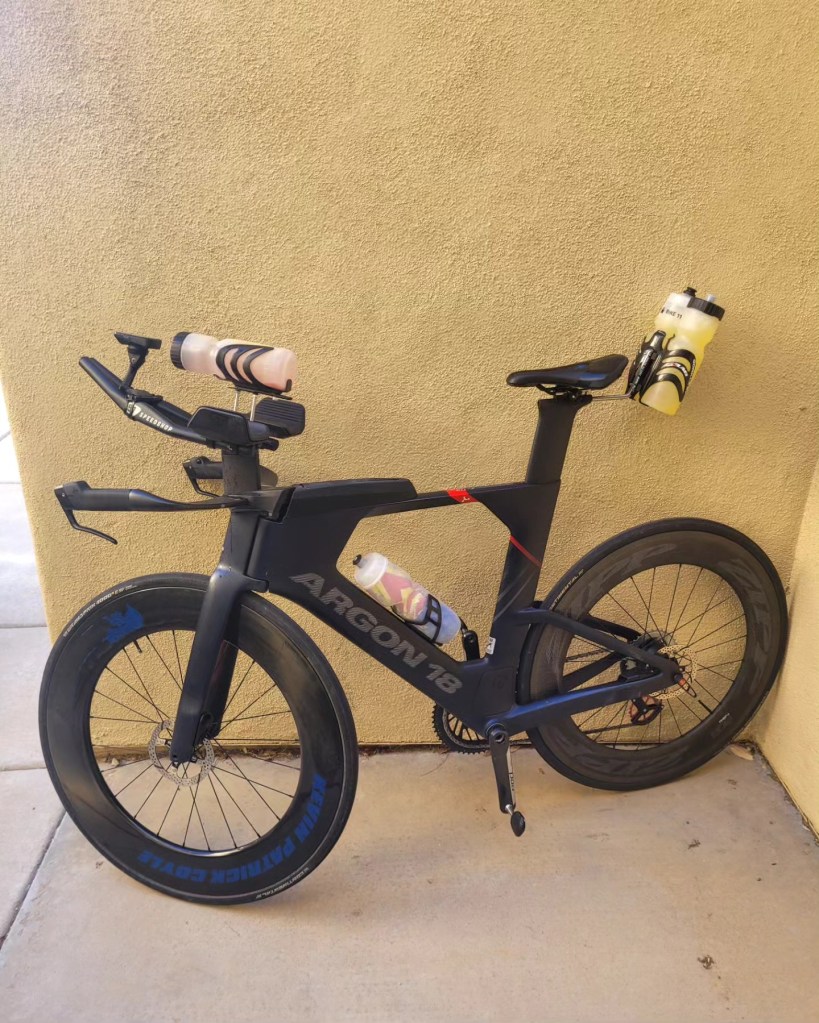 I ended up getting my new Argon disc but went through a 3″ pot hole and destroyed 2 carbon wheels so I am waiting for replacements and on my old Argon. The new bike is incredible and position way better so cant wait for that. Fiona is also doing great with her training can coach. Stay tuned for Kevin and Fiona Coyle at IMLP!