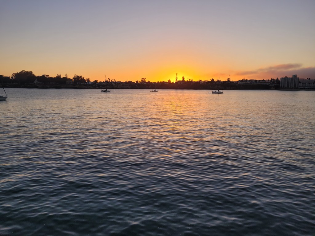 Friday – Large free brekky, drive to Santa Cruz past largest vineyard in the USA. Get to cheap but great location Ocean Gate Hotel. View of the boardwalk. Ran 3M to end of pier past seals past rides and the start/finish. Then we had fish and chios at the end of the pier for sunset dinner.