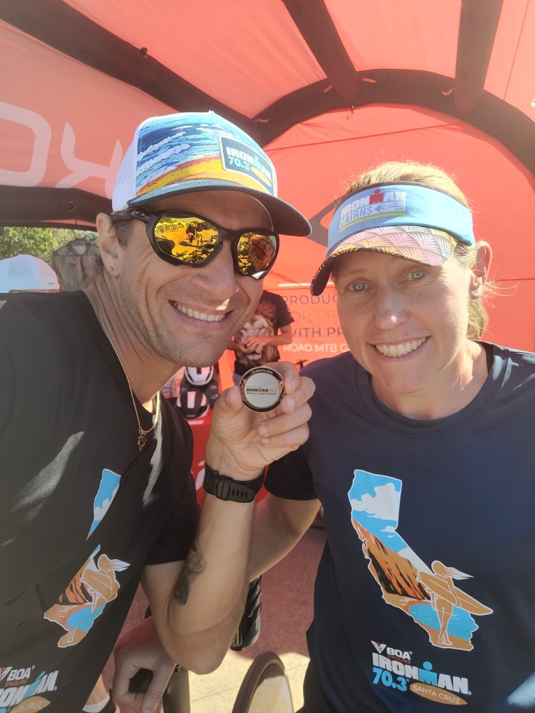 Yesterday my wife and I completed the Ironman 70.3 Santa Cruz triathlon. There was a 1.2mile swim in the 63F water of Monterrey Bay around the Santa Cruz boardwalk, a 56mile ride out and back along the famous RT1 just short of Pigeon Point lighthouse, and a 13.1mile half marathon run along the cliffs overlooking the Pacific Ocean. I had a very good race finishing in 4:40:16 placing 19/262 M35-39 and Fiona went 5:28:20 placing 14/70 F35-39. I was able to get the 3rd of 4 roll down spots to compete in the 2024 70.3 Ironman World Championship in Taupo, New Zealand but Fiona missed out with only 1 spot in her A/G.