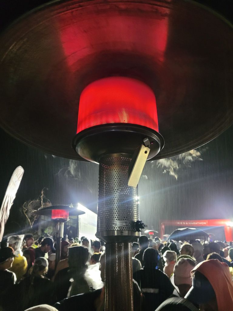 I stayed on the bus working a playlist, hit the loo, had a Maurten 100 Caffiene 15min before, but the race was delayed 25min after I turned in my jacket. The race had 50+ heaters, which I love here. I was cold but tried to stay warm. No warm-up. 2 years ago, I had bad Plantar Fasciitis, which I have now recovered from and held back. Today, with my new Hoka Carbon X and feeling healthy, I was going for it looking to start at 6:40/mile before the first and only hill on this 1,700′ net downhill course.