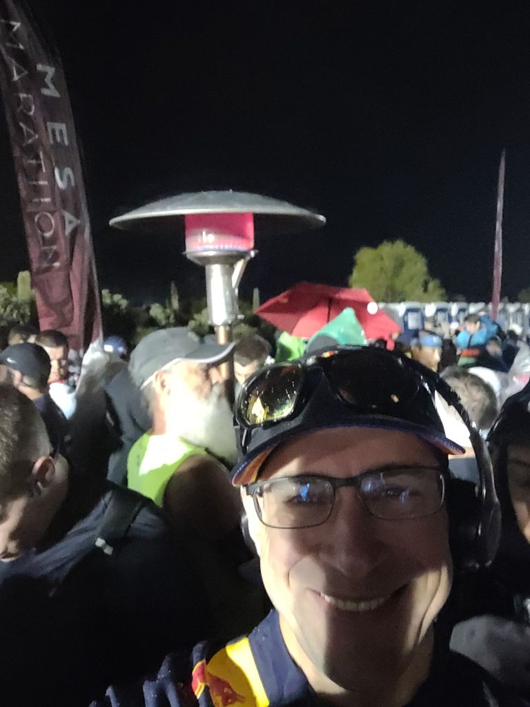 After a terrible 3:23 Tucson marathon where I suffered through a bad hamstring pull the last 7 miles, I took 2 weeks off and adjusted down my mileage from 45M-54M weeks and long runs up to 23M down to 38M-44M weeks and long run of 15M. An endurance athlete for 15 years, I had the base. I just needed to work on quality, so I started doing 3x1M hard on down hill courses to simulate Mesa. I also focused on losing weight from 187lbs to 182lbs by reducing calories over breakfast and lunch with 180-250 calorie lean cuisines. The days leading up always carbo loading but not as extreme. The day prior was 3 bagels, 1 muffin, 2 ramen noodles, 1 hot chocolate, and a banana for around 2,500 calories, mostly carbs and salt.