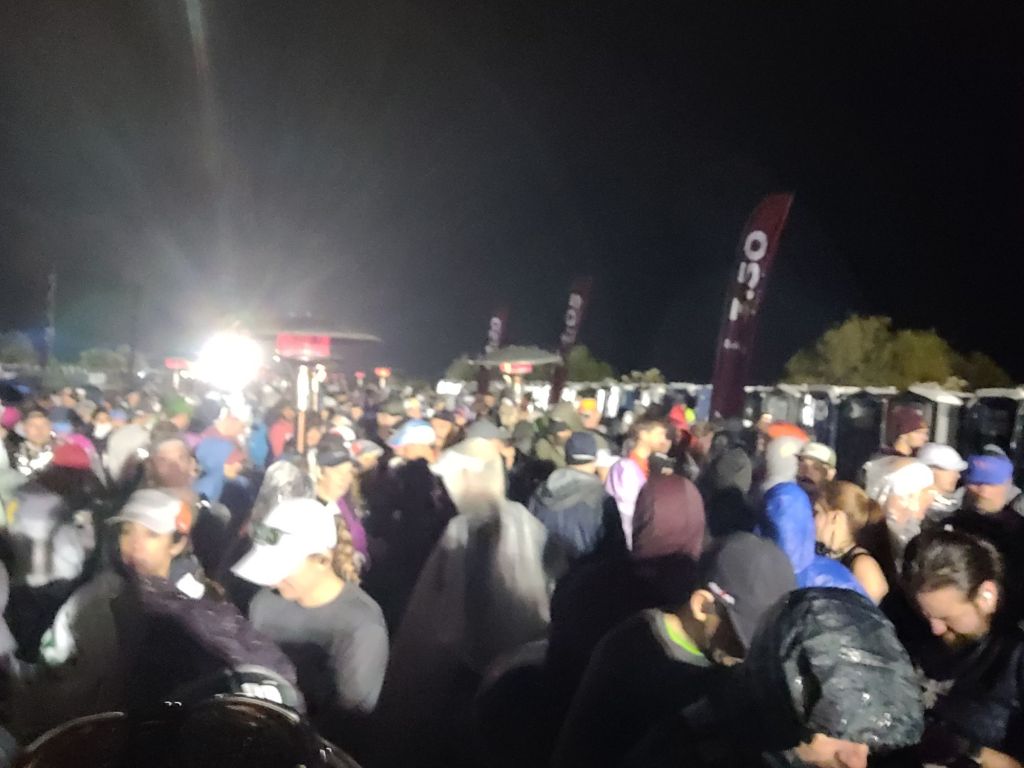 It started raining in the night and it was low 40s and cold. Breakky was a 450-calorie chocolate muffin, medium redbull, banana, and 2 immodium. In Tucson, I stopped in the loo 3X because of Costco Pizza and the fat content the day before, so I went back to what worked 2 years ago when I went 3:07 here, and it worked great. No fat, little protein, no fiber.