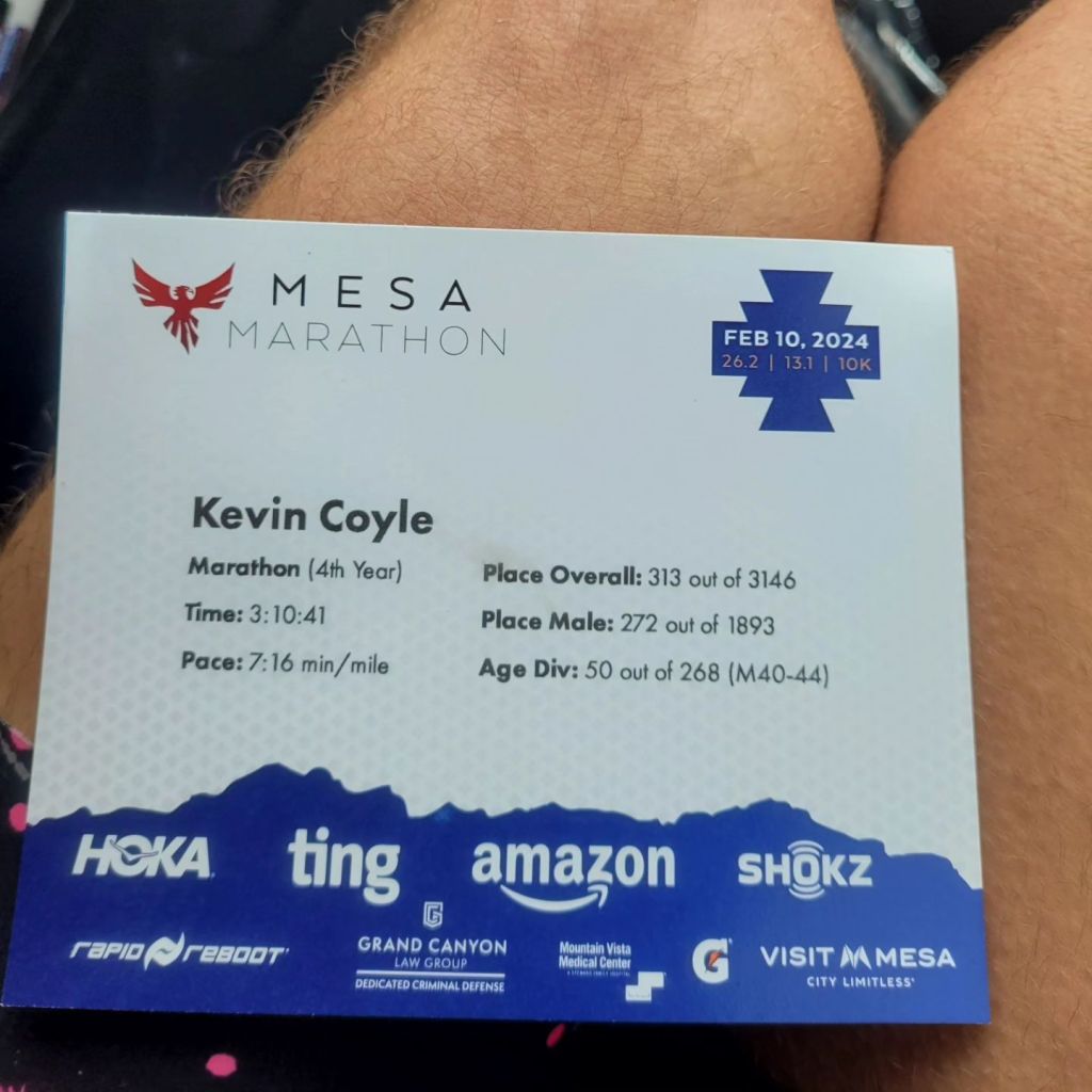 In May I will take my first of 4 CPA exams (at 40 years old). Studying for it is just like an Ironman. Time, consistency, dedication, I will get it, I will pass this. Then in October we want to do T100 in Las Vegas with the wolds best triathletes as a test race for the 70.3 World Championship in Taupo, New Zealand. In January, we’ll do the Buckeye Marathon on Pheonix and see if I can go a few minutes better than today.