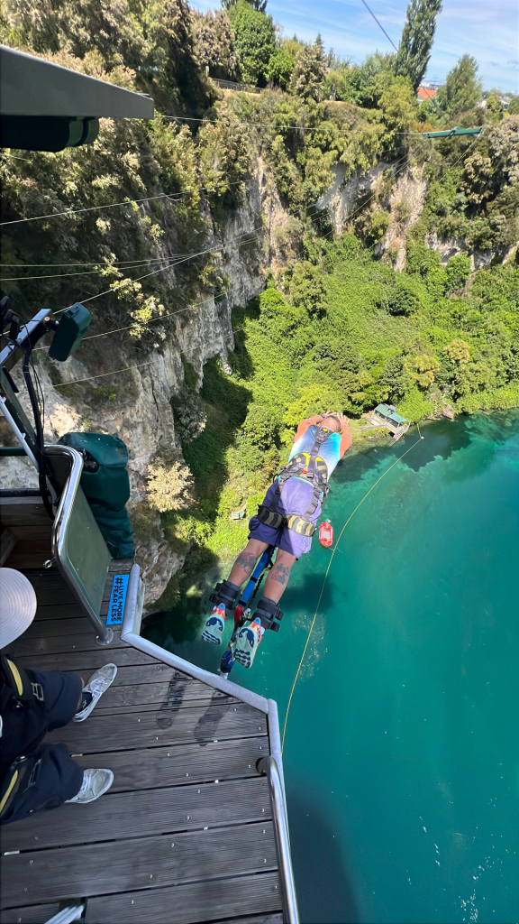 Wednesday: A short 3mile trail run and then I swam 11min short in Lake Taupo where I was a bit freaked out by seeing the crystal clear ground beneath me. I then went Bungy Jumping which was absolutely amazing. I’ve done that in Costa Rica from the 3rd highest bungy bridge in the world at 80meters, and I did it at Nevis Bungy on the South Island at 151 meters. But this was just awesome. Check in, boat ride on lake Taupo, Maori carvings, and an amazing dinner over looking the lake.
