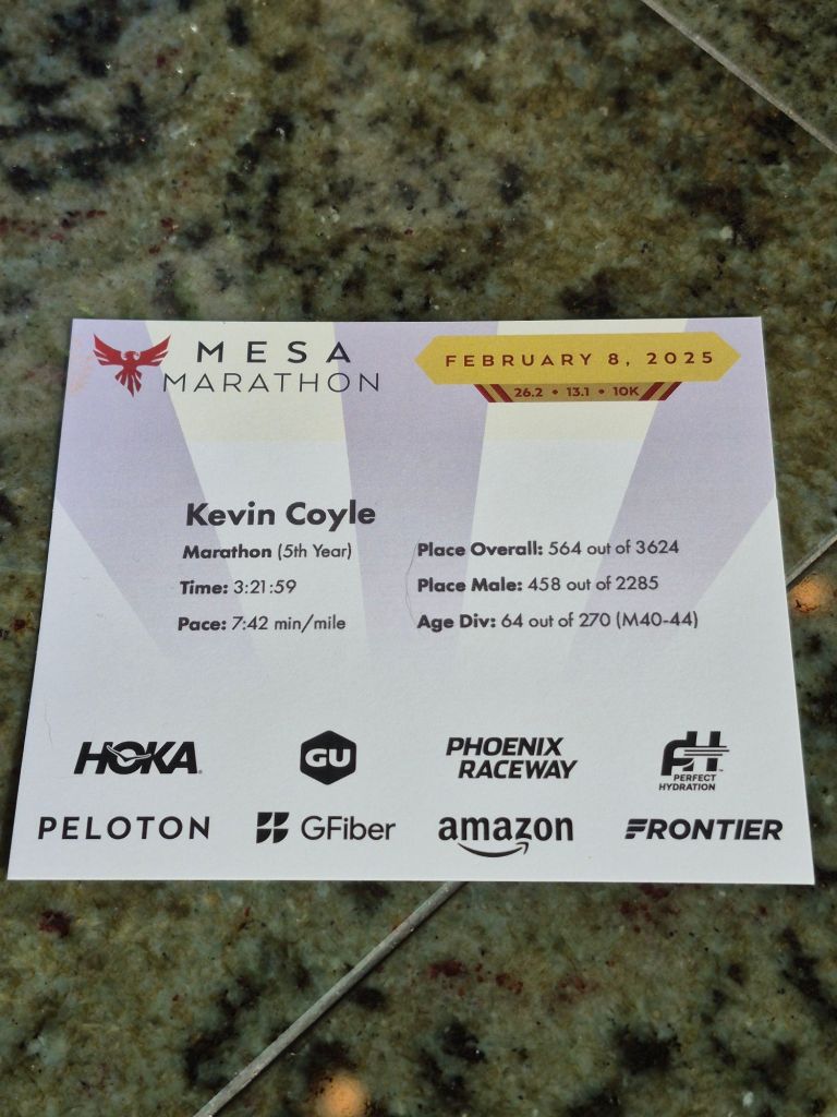 Marathons take a lot out of you physically. They say 1 day per mile. So with 28 days since my recent 3:02 BQ at Buckeye Marathon, I should be recovered right? I had 7 days off after Buckeye and then got back into swim, bike, and run with the goal of a Sub3 at Mesa. I set out a race plan and gave myself the confidence I needed but at Mile 7, I hit a mental wall and finished in 3:21:59. Fiona was also slower by 20 minutes coming in at 4:01 but had the cough that has been going around for nearly 3 weeks. I ‘should’ have my BQ so now it’s up to Fiona. We have decided to head to Seattle for a very fast course at the Jack and Jill’s Downhill Marathon in July, 2 weeks after Muscleman 70.3.