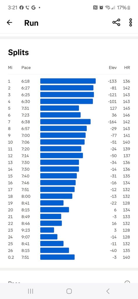 HR was a Bronze all time for 90minutes at 141. This was 2BPM lower than Buckeye and I went 3min slower for the Half. Another great HR and able to push.