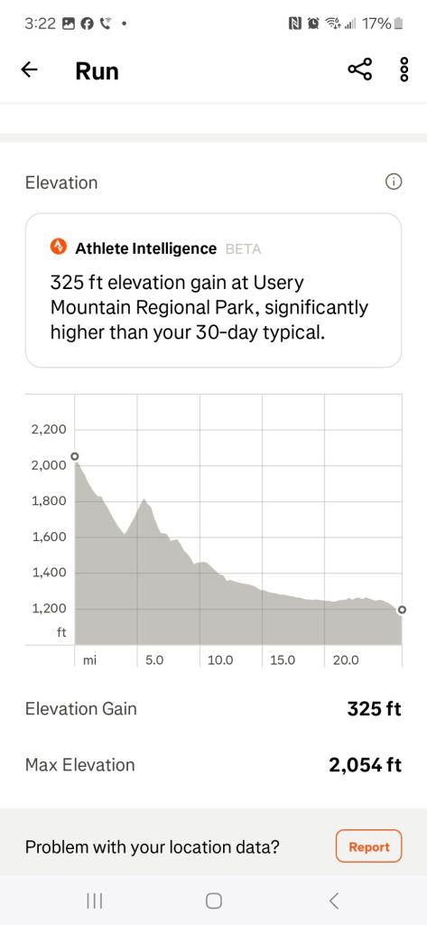 8:41, 8:15 final downhill mile on this net downhill with 1,200′ of loss. Into the finish line taking some pics. My legs did nit cramp like Buckeye so the salt was exactly what I needed. Fuel was also good with no digestive issues either.